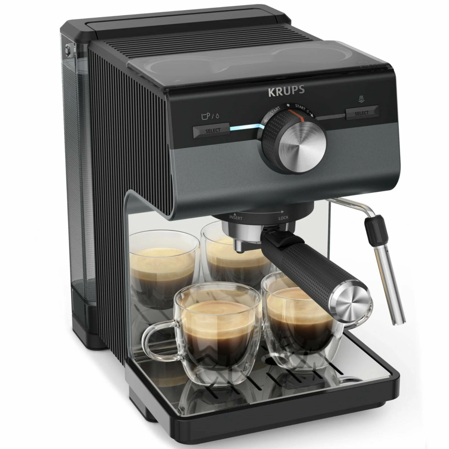 В рожковой кофеварке организовано удобное хранение фильтров в специальном отсеке.