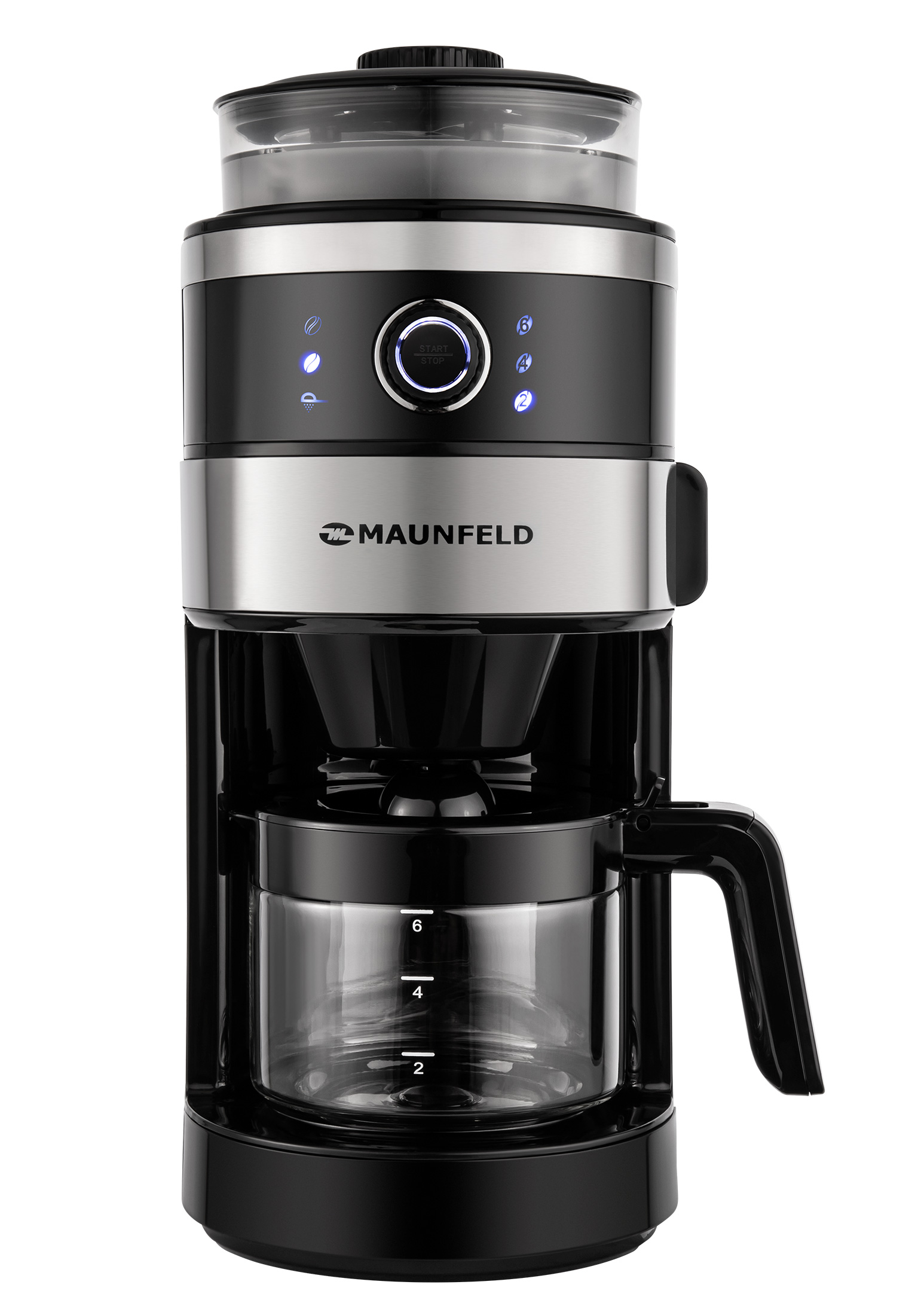 вращающийся фильтродержатель, индикатор уровня воды, индикатор включения, плита автоподогрева
