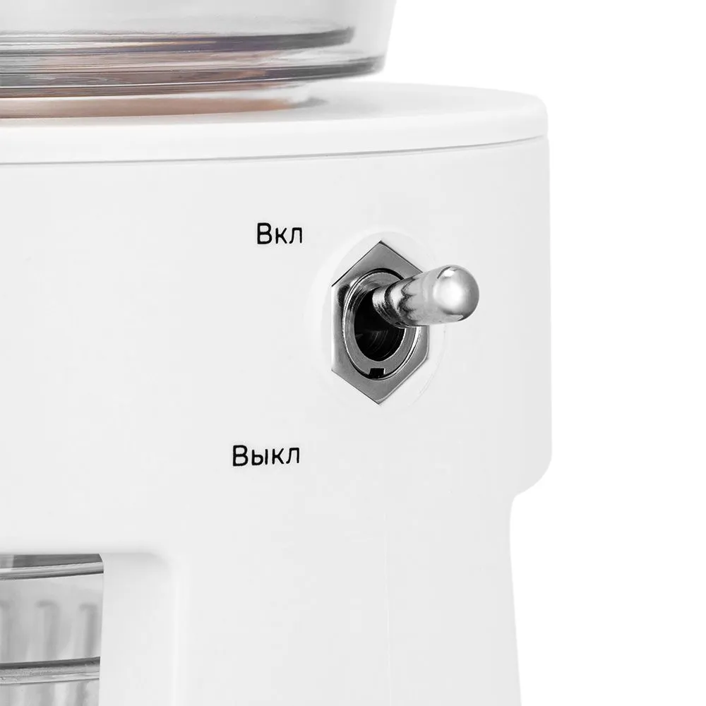 Переключатель включает и отключает кофеварку, а именно вращение резервуара для воды. Подсветка загорается, когда прибор включён, и гаснет, когда прибор выключен. Кофеварка выключатся автоматически через 5 минут работы.