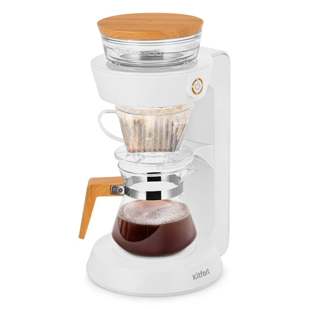 Портативная кофеварка-пуровер КТ-7574 готовит ароматный чёрный кофе из молотого кофе. Особенность данной кофеварки заключается в воронке для пуровера - методе заваривания кофе, при котором горячая вода равномерно проходит через молотый кофе.