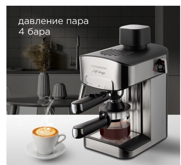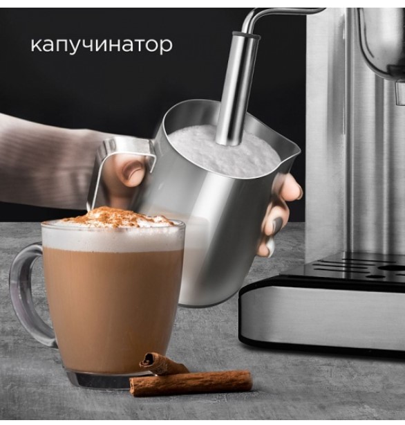 Компактная рожковая кофеварка RCM-M1523со встроенным капучинатором сделает каждое утро ярким! Теперь вы сможетеготовить ароматный эспрессо или американо как в любимой кофейне и украшатьнапиток пышной молочной пеной.
