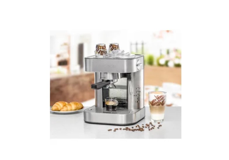 Портативная эспрессо-машина Rommelsbacher EKS 2010 идеально подходит для небольшого кафе-бара дома или в офисе. Эта эспрессо-машина с высококачественным оборудованием заваривает ароматный эспрессо с тонкой, густой пенкой. Благодаря высокопроизводительному качественному насосу и прочному термоблоку из литого алюминия, свежемолотые бобы, а также эспрессо / кофейные подушки могут быть превращены в ароматические кофейные напитки. Съемная насадка из нержавеющей стали позволяет легко приготовить вкусную горячую молочную пену или удалить горячую воду для чая. Количество наполнения чашки для 1 и 2 чашек может быть предварительно запрограммировано на ваш индивидуальный вкус. Съемный резервуар для воды объемом 1,5 литра с электронным контролем уровня воды оснащен фильтром для воды, который обеспечивает наилучшее качество воды. Регулируемая по высоте полка для чашки, съемный поддон для сбора капель со световым индикатором и прозрачная панель управления со светодиодной контрольной лампой обеспечивают удобство работы. Шикарный, высококачественный и универсальный - идеально подходит для любителей итальянского кофе.