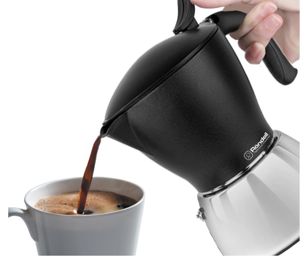 Многие итальянцы даже в наше время не спешат передавать почетное право приготовления кофе электрическим машинам и предпочитают делать это своими руками. Но не в турке, а с использованием гейзерных кофеварок, которые отлично справляются с поставленной задачей. Если вам также нравится этот способ, обратите внимание на гейзерную кофеварку Melange от Rӧndell. Итальянцы точно были бы довольны! Во-первых, эта кофеварка отличается современным, оригинальным, изысканным дизайном. Во-вторых, она имеет внутреннее двухслойное антипригарное покрытие, которое не только значительно продлевает срок службы, но и облегчает уход за ней. В-третьих, благодаря тому, что низ гейзерной кофеварки Melange изготовлен из высококачественной нержавеющей стали (инновационное решение!), устройство можно использовать на любых видах плит, включая индукционные. Верхняя же часть — традиционно алюминиевая, что гарантирует напиткам насыщенный натуральный вкус. И, наконец, в-четвертых пользоваться кофеваркой очень удобно: вы можете придерживать крышку и наливать напиток одной рукой.