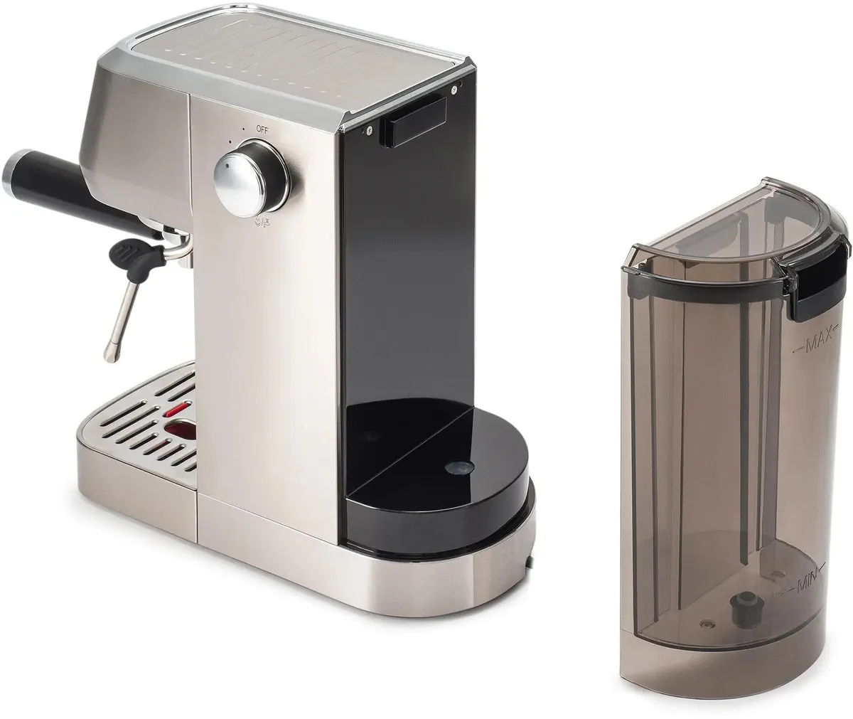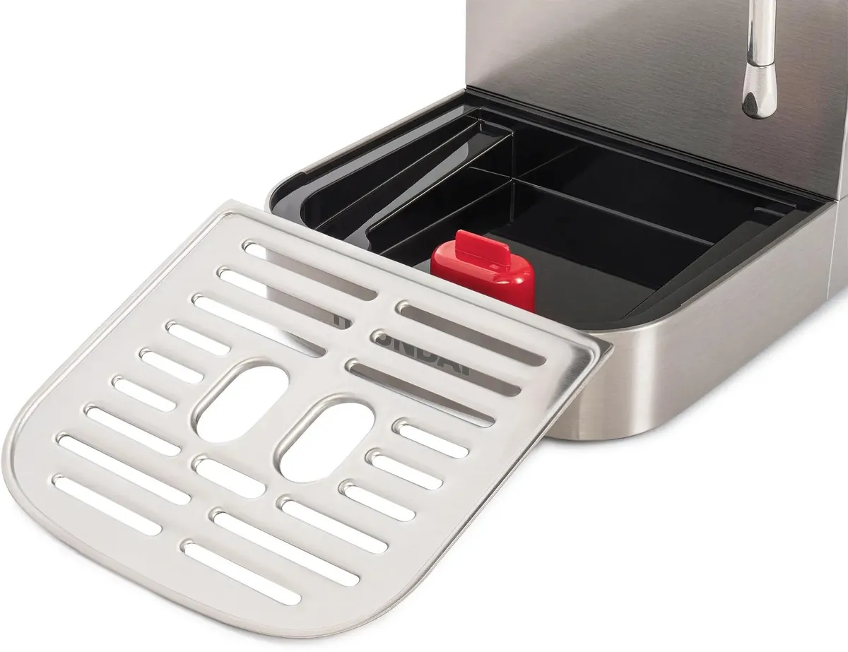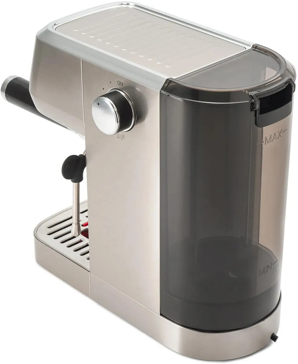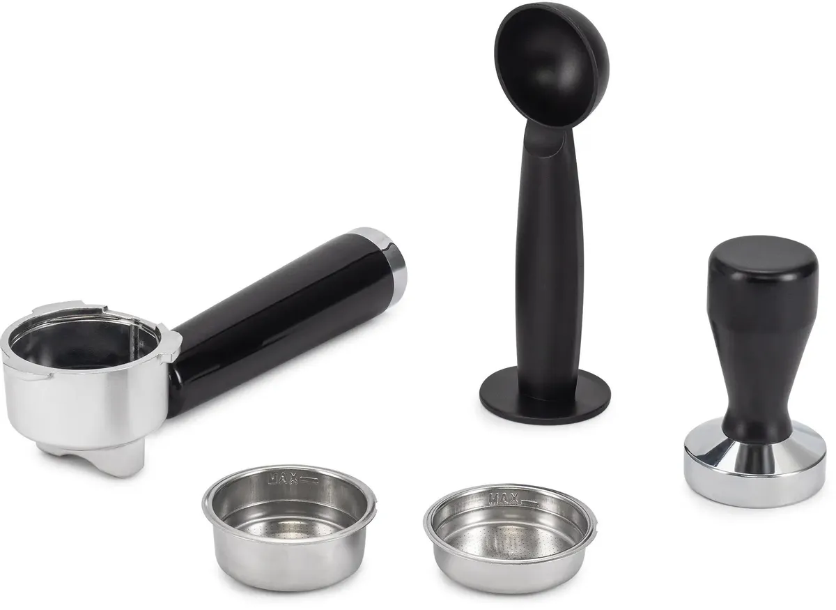 Итальянская помпа 20бар с функцией предварительного заваривания для качественного экстрактирования кофе. Профессиональный металлический темпер для правильной прессовки, фильтры на 7 и 14грамм кофе в комплекте.