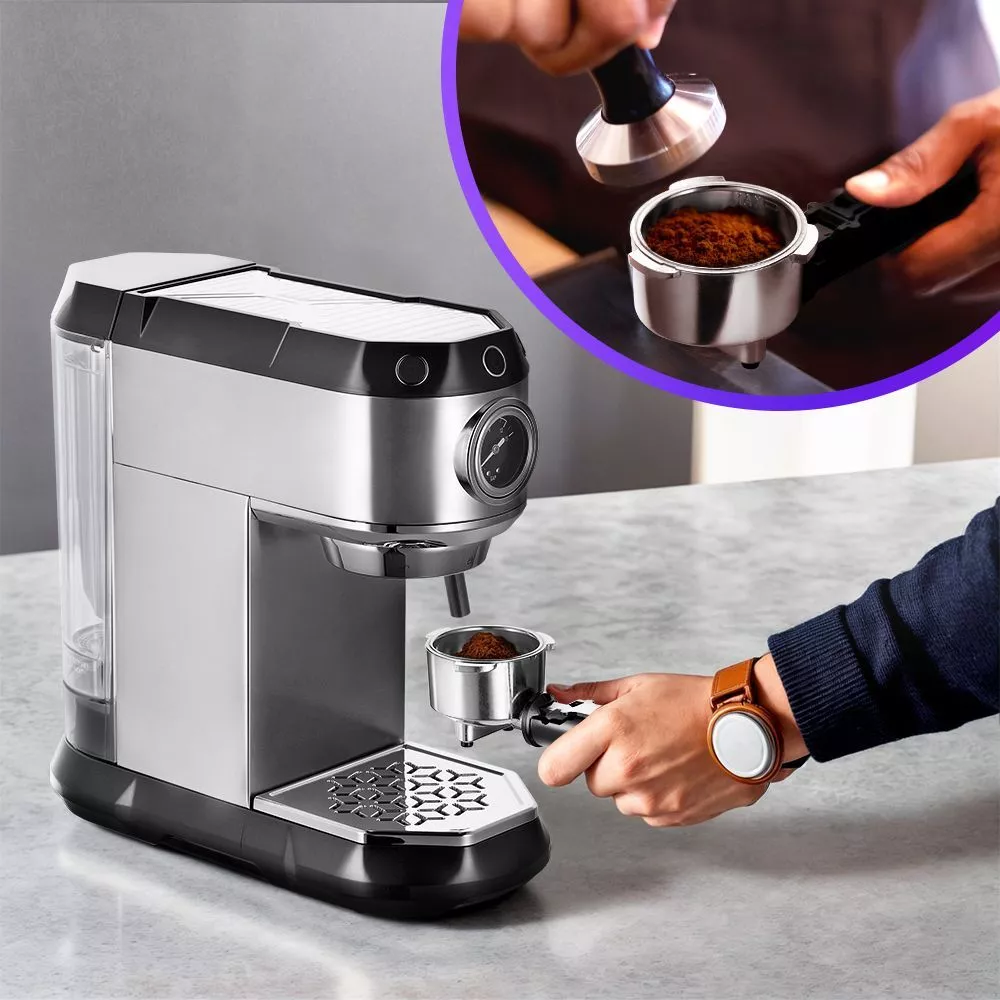 Мерная ложка-темпер поможет наполнить рожок и утрамбовать в нём кофейную таблетку. Металлический фильтр для одной и двойной порции эспрессо с лазерным нанесением отверстий долговечны и не требуют использования каких-либо расходующихся частей.