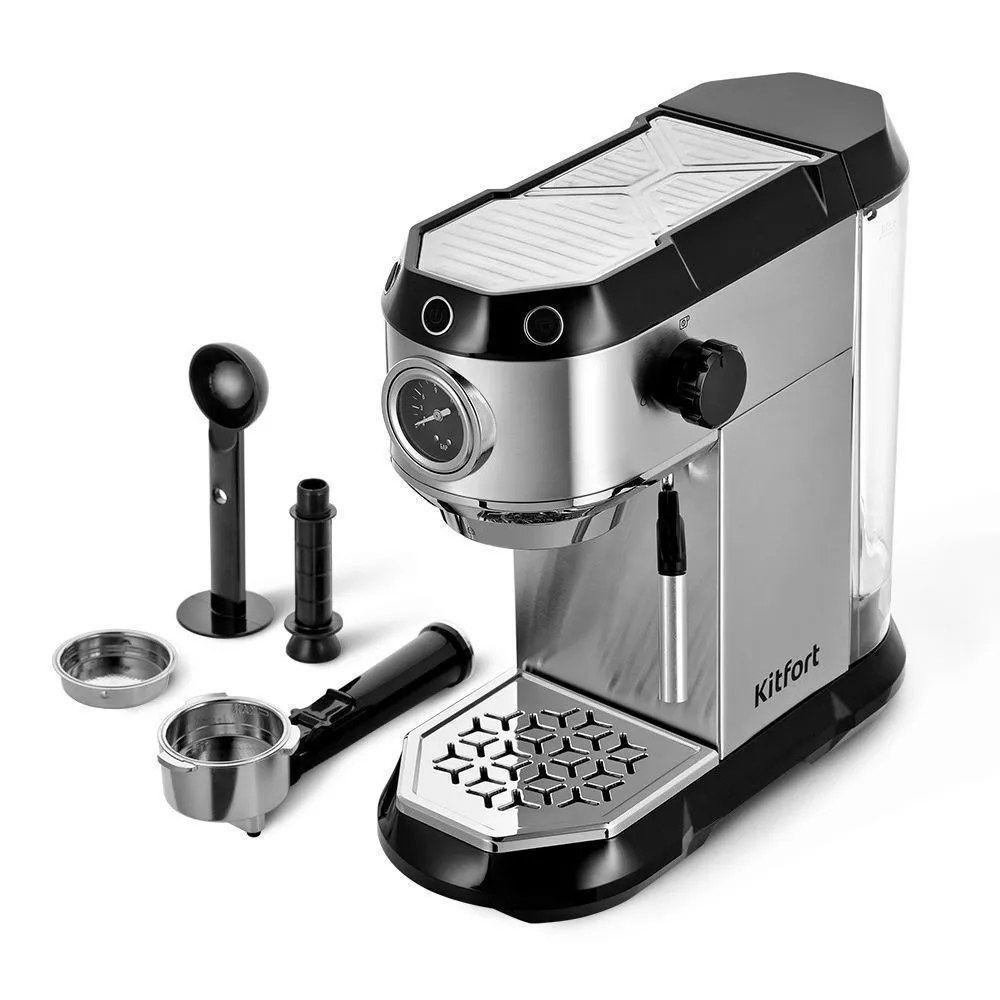 Рожковая кофеварка КТ-7194 поможет приготовить кофе эспрессо, капучино или латте, а также множество других видов кофе на наш вкус. Рожковая кофеварка — отличный выбор для гурманов, желающих ежедневно наслаждаться полным букетом вкуса свежего кофе.