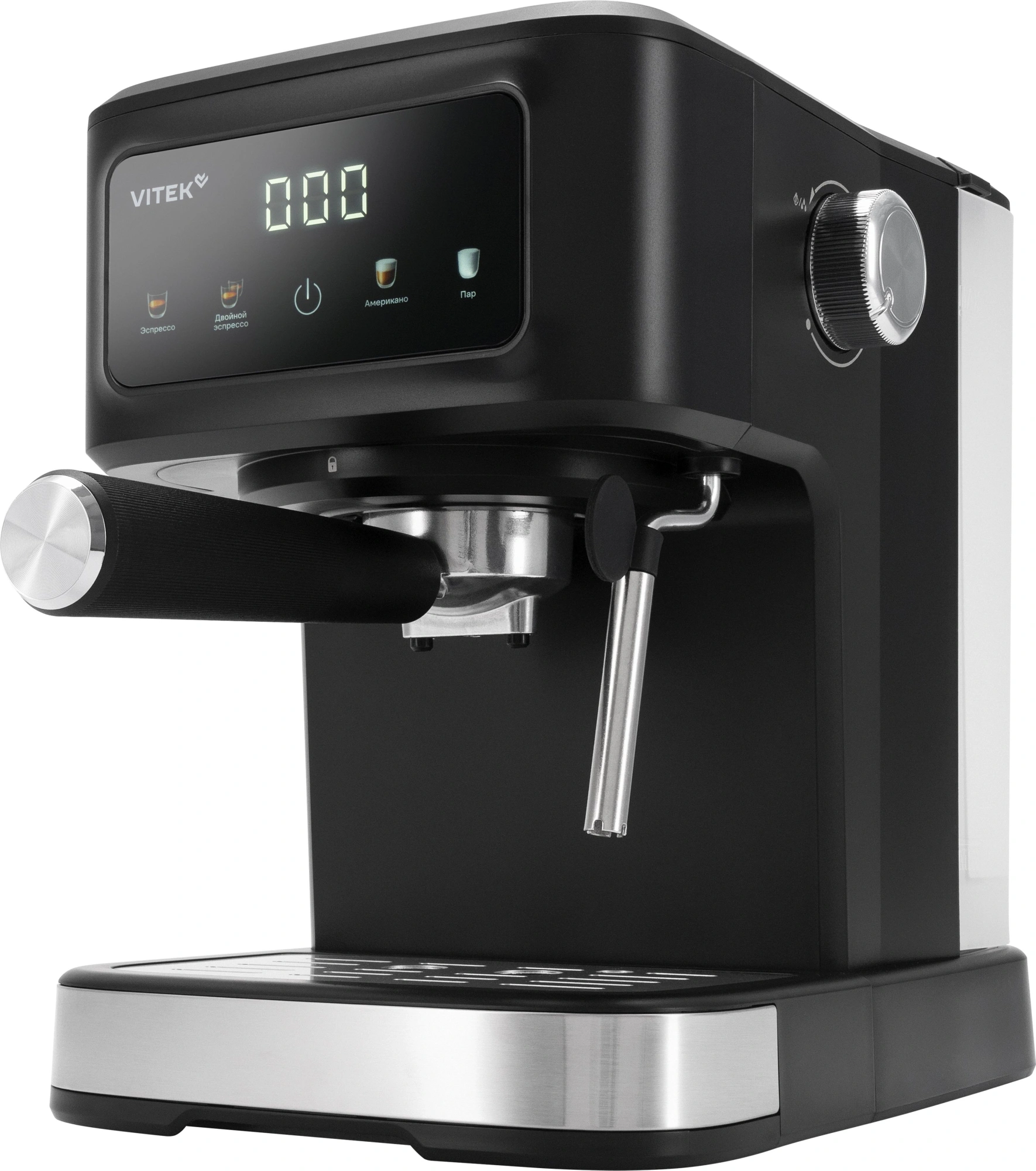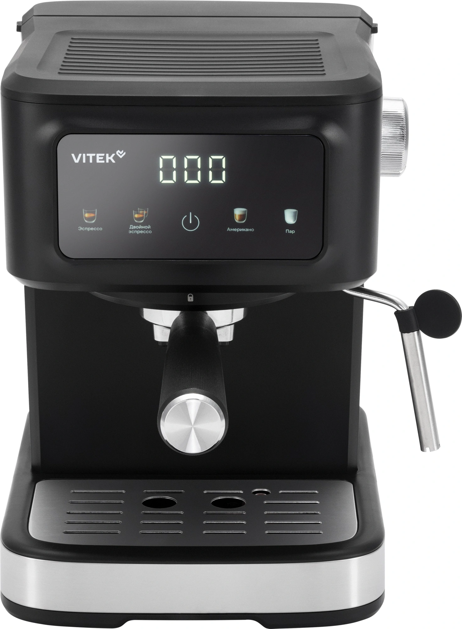дисплей, капучинатор, панель для подогрева чашек, съемный поддон для капель, съемный резервуар для воды, темпер