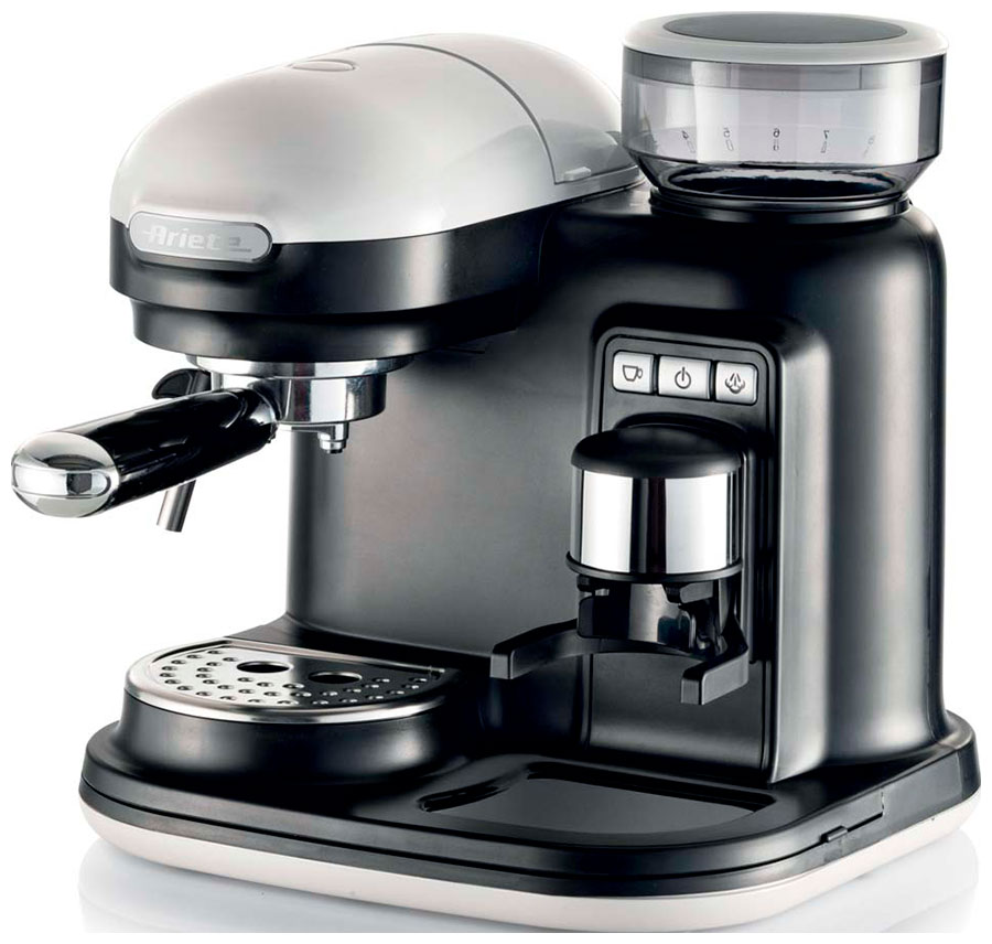 Ariete 1318 Moderna Espresso - рожковая кофеварка со встроенной кофемолкой. Из комбинации плавных линий и утонченного дизайна родилась эспрессо-кофемашина Moderna.