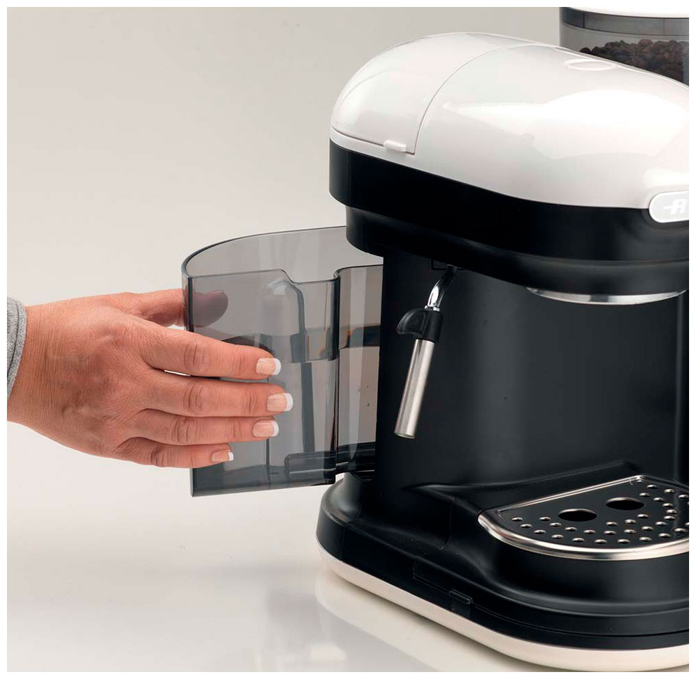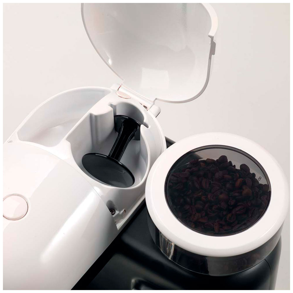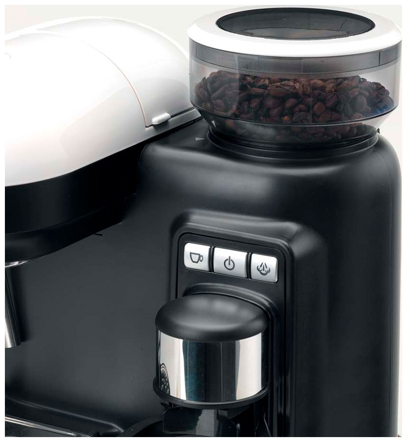 Благодаря давлению в 15 бар, держателю фильтра на 1 и 2 чашки, съемному подносу и резервуару для воды, вы получите истинное удовольствие от ароматного кофе, как в кафетерии! Встроенная кофемолка делает эту машину ценным и функциональным прибором, разработанным для истинных ценителей, которые оценят аромат свежемолотого кофе. Стиль и функциональность делают эту машину настоящим шедевром.