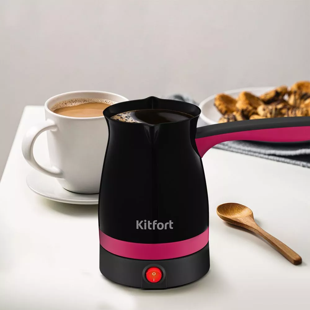 Электрическая турка КТ-7183 порадует вас не только свежеприготовленным ароматным кофе, но и своим креативным дизайном! Выберите любимый цвет турки и украсьте ей вашу кухню!