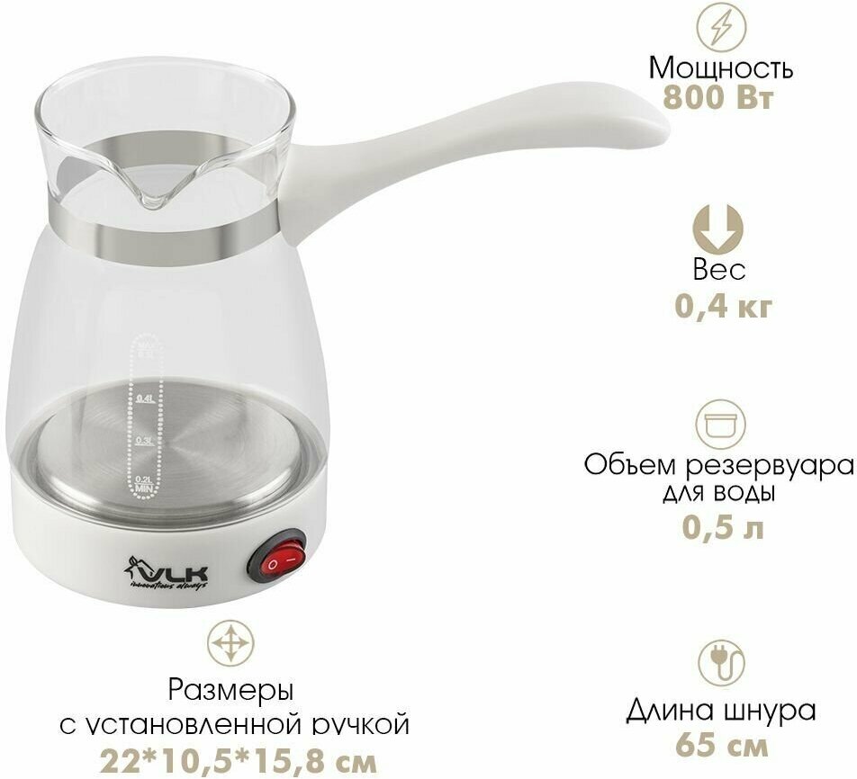 Электрическая кофеварка-турка VLK Venice 6003 мощность 800 Вт, объем 0,5 л 90386 предназначена для приготовления кофе.