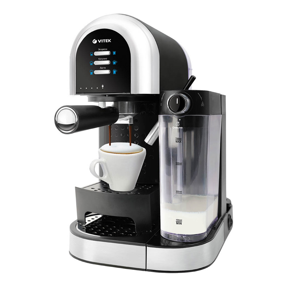 Элегантная кофеварка VT-1525 c итальянской помпой ULKA – это истинный подарок для всех ценителей хорошего кофе. Она создает давление 15 бар и автоматически приготовит любой напиток на ваше усмотрение: латте, эспрессо или капучино. Вам нужно только добавить молотый кофе в рожок! При помощи капучинатора вы получите восхитительную молочную пенку для приготовления любимых напитков. Достаточно налить молоко в резервуар для молока, выставить нужный уровень пенки в зависимости от напитка, нажать на кнопку и кофеварка приготовит ароматную чашку латте или капучино. Одновременно с этим Вы можете выбрать объем напитка и приготовить одну или две порции. Кофеварка также оснащена термоблоком: он не только обеспечивает безупречный вкус и быстроту приготовления, но и уменьшает затраты на электроэнергию при использовании прибора.