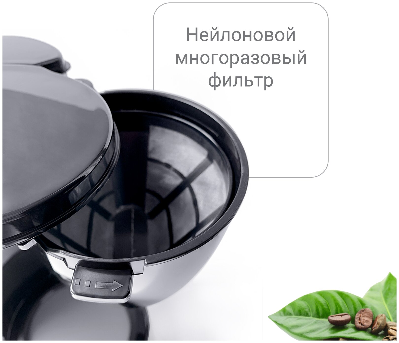 вращающийся фильтродержатель, индикатор уровня воды, индикатор включения, плита автоподогрева