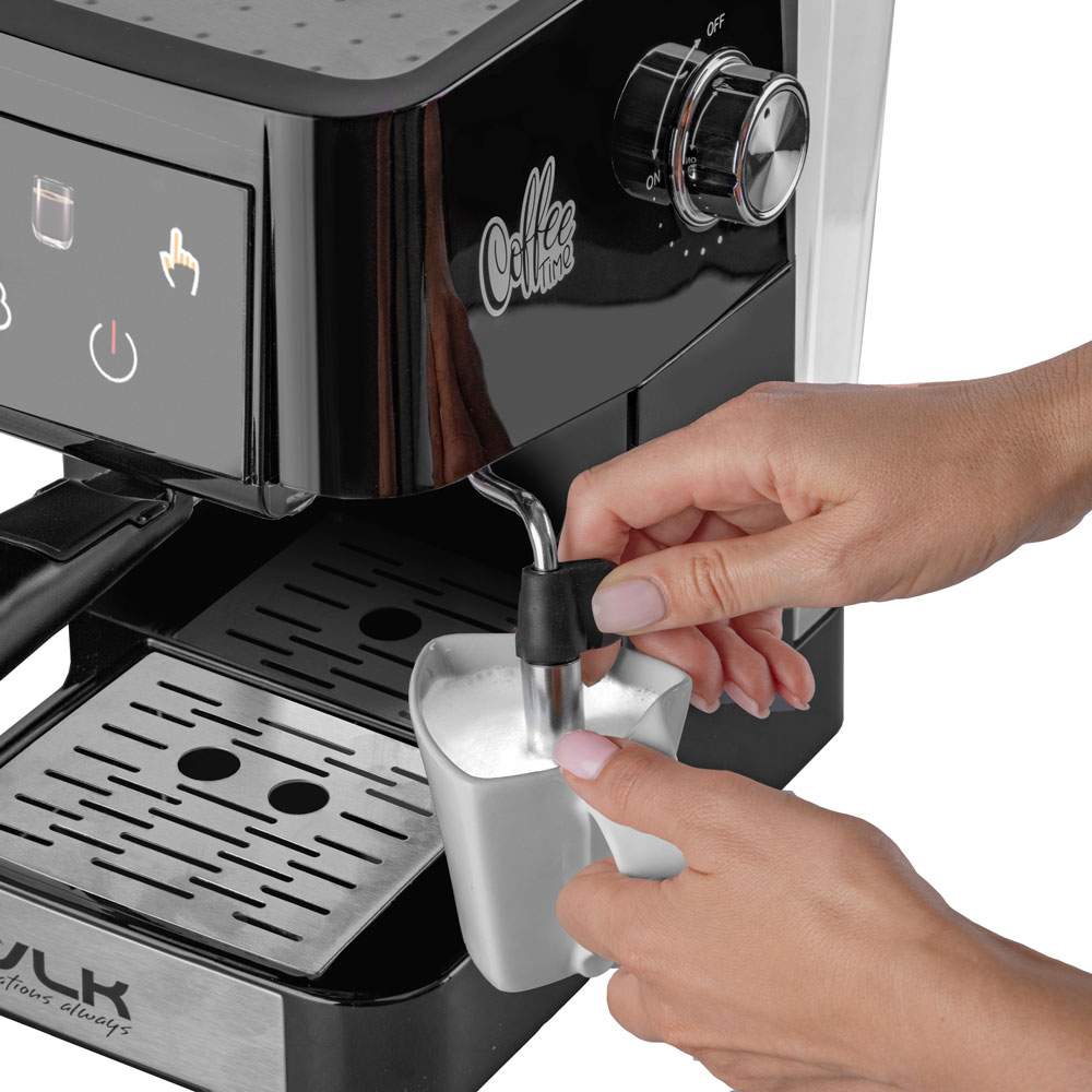 Тип кофеварки: рожковый, Тип используемого кофе: молотый, Подходит для приготовление эспрессо и капучино, Сенсорное управление со световой индикацией, Съемный бак для воды, Насадка "ПАНАРЕЛЛО" для приготовления плотной молочной пены, Съемный моющийся поддон для сбора воды, Защита от перегрева и избыточного давления, Съемный фильтр на одну и две чашки из нержавеющей стали, Площадка для подогрева чашек, Функция выбора температуры кофе, Функция памяти объема напитка, Функция автоотключения