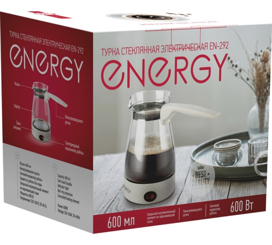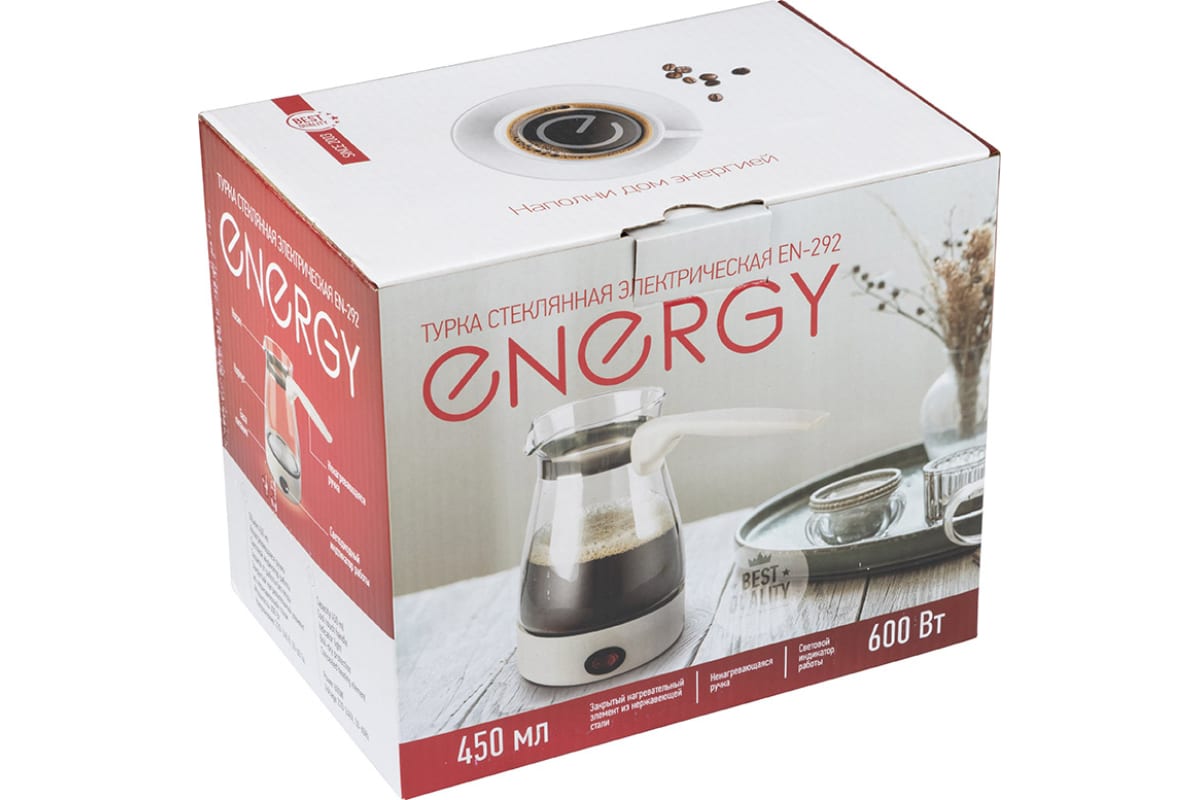 Стеклянная электрическая турка ENERGY EN-292 600 Вт 12339 104097 используется для приготовления кофе.