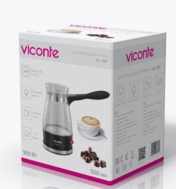 Электрическая кофеварка-турка позволяет значительно ускорить процесс приготовления кофе, чем при использовании традиционной турки. Она также подойдет для кипячения небольшого объема воды. Модель состоит из основной емкости и базы, которая подключается к электросети. Корпус турки выполнен из высококачественного термостойкого пластика с глянцевой поверхностью. Материал устойчив к нагреву, не влияет на вкус и запах напитка. Упаковка - подарочная коробка.