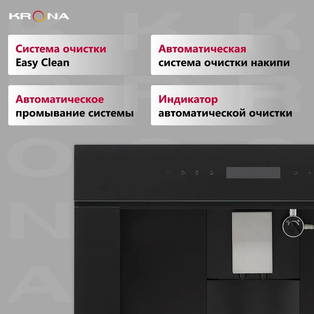 Индикация: Индикация режима работы, Индикация отсутствия кофе, Индикация отсутствия воды, Индикация готовности к работе, Индикация необходимости очистки от накипи