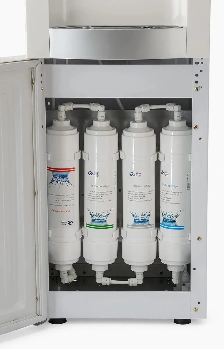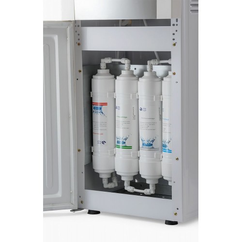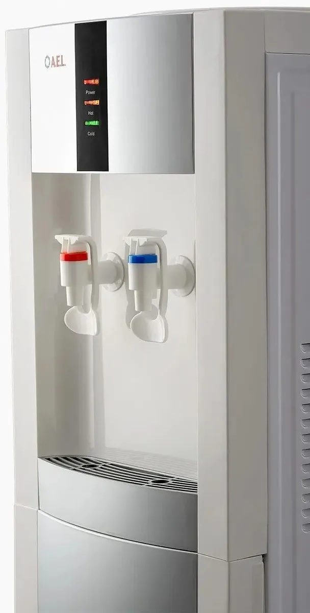 Напольный пурифайер с компрессорным охлаждением. 4-х уровневая система очистки с ультрафильтрационной мембраной (UF) обеспечивает безупречное качество горячей и холодной питьевой воды. Удобные и красивые краники нажим чашкой. Бак нагрева: 1,0л (нержавеющая сталь). Бак охлаждения: 3,6л
