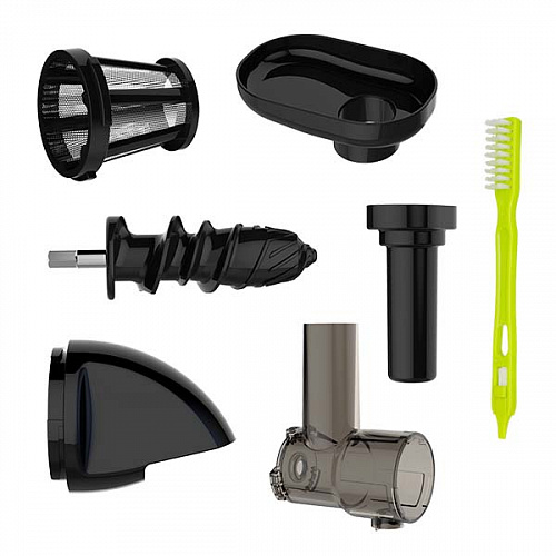 Соковыжималка, толкатель, контейнер для сока, контейнер для жмыха, щетка для очистки, руководство по эксплуатации