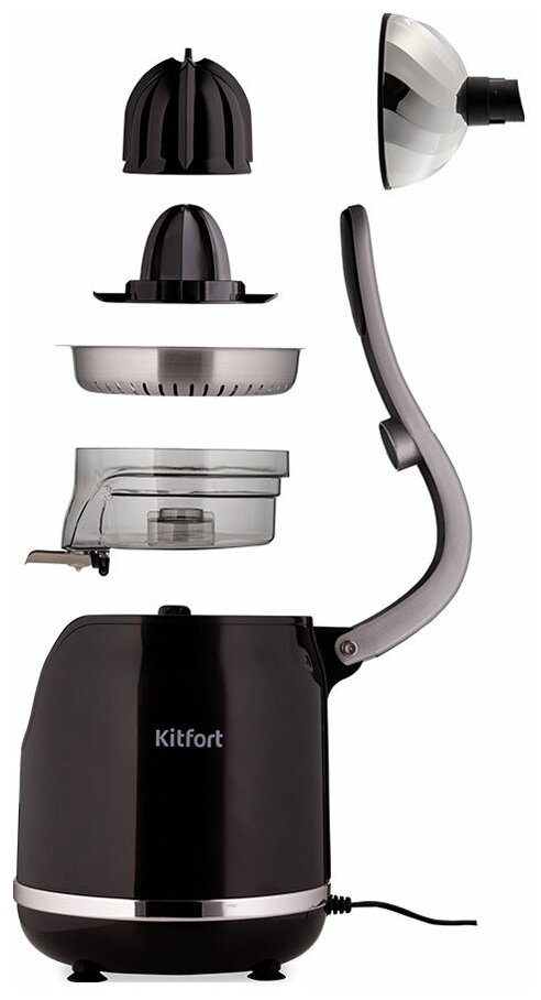 Комплектация 1. Соковыжималка – 1 шт. 2. Крышка конуса – 1 шт. 3. Большой конус – 1 шт. 4. Маленький конус – 1 шт. 5. Фильтр – 1 шт. 6. Лоток для сока – 1 шт. 7. Шпиндель – 1 шт.