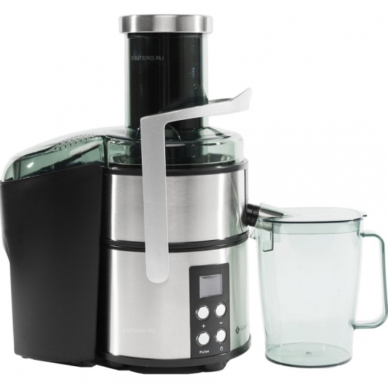 Универсальная соковыжималка для овощей и фруктов; Центробежная; Автоматическое отделение отходов; Электронное управление; ЖК-дисплей; 4 скорости + импульсный режим; Материал корпуса – нержавеющая сталь/пластмасса; В комплекте: толкатель, кувшин для сока емкостью 1,1 л с крышкой, контейнер для жмыха емкостью 2 л. Габаритные размеры - 305х215х390. Тип - для фруктов и овощей. Материал рабочего узл - нерж. сталь/пластмасса. Мощность - 800 Вт. Параметры сети - 220/50/1. Комплектация - толкатель, кувшин для сока емкостью 1,1 л с крышкой, контейнер для жмыха емкостью 2 л. Материал корпуса - нерж. сталь/пластмасса.