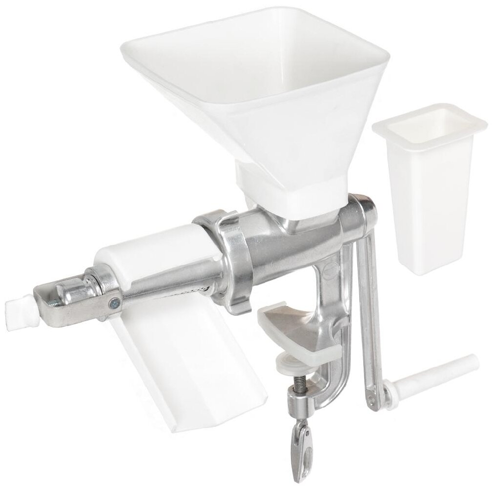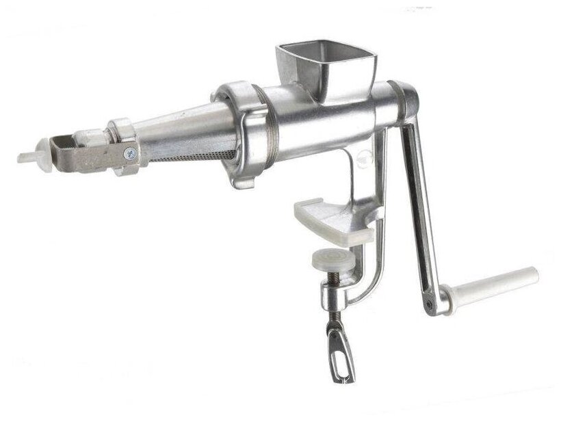 Снабжена механизмом регулирования интенсивности выхода сока. Прижимное устройство с резиновыми башмаками обеспечивает прочное крепление ее к столу и предохраняет его от повреждения. Механизм регулирования интенсивности выхода сока придает удобство в эксплуатации, а лоток предотвращает разбрызгивание сока. Струбцина соковыжималки обеспечивает крепление к крышке стола толщиной от 15 до 40 мм, при наличие выступа крышки не менее 25 мм.