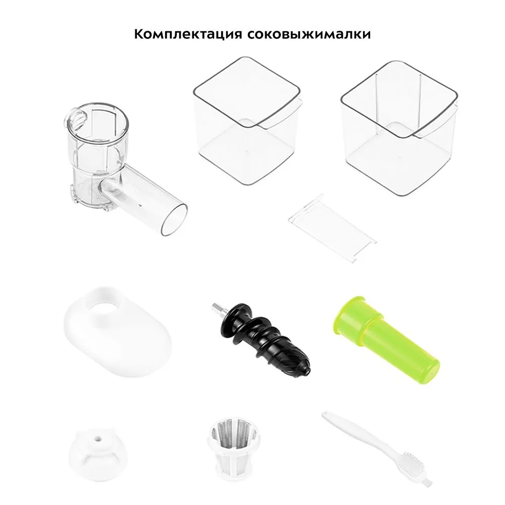 Соковыжималка разбирается за считанные минуты. Все съёмные части легко моются. А в комплекте имеется удобная щёточка для удаления остатков мякоти из отверстий сетки фильтра.