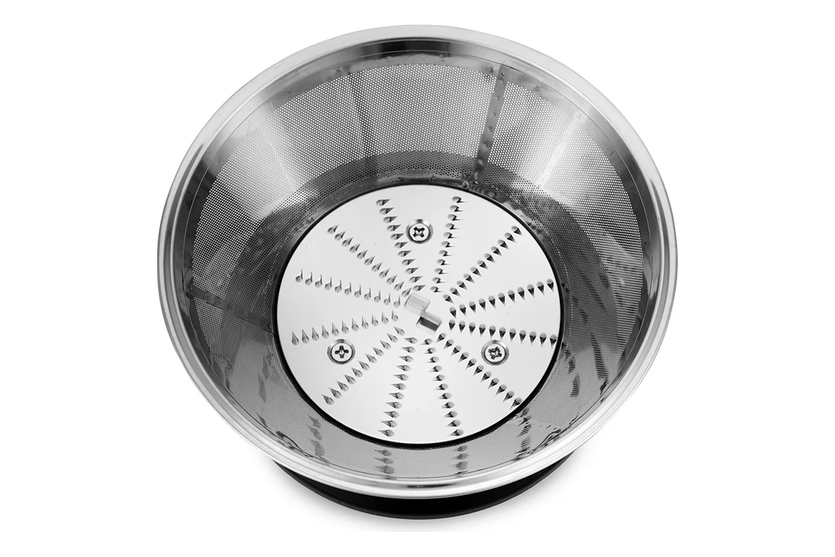 Широкая горловина позволяет загружать многие фрукты и овощи целиком, не нарезая их предварительно на части.