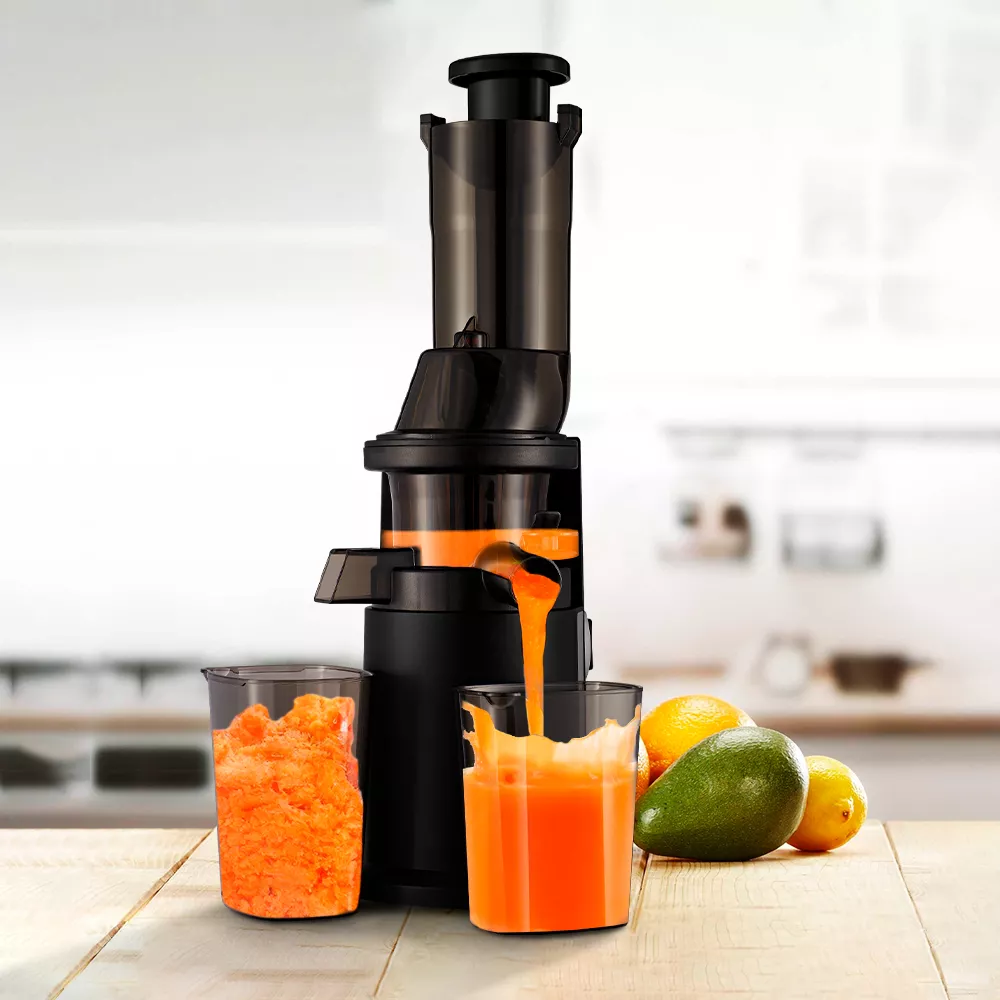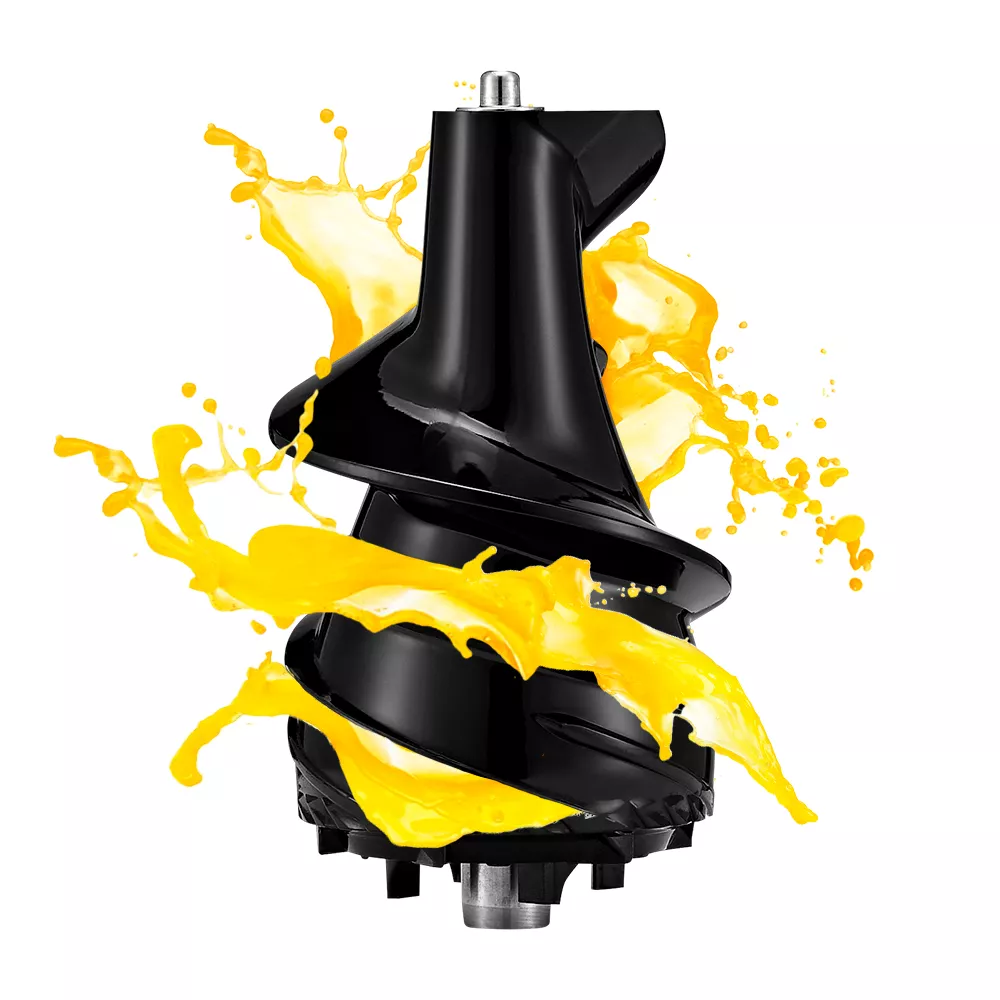 Низкая скорость вращения на 58 об/мин обеспечивает значительно более низкую температуру в процессе отжима, что способствует сохранению питательной ценности продуктов. В соковыжималке сок почти не вспенивается и получается с небольшим количеством пены.