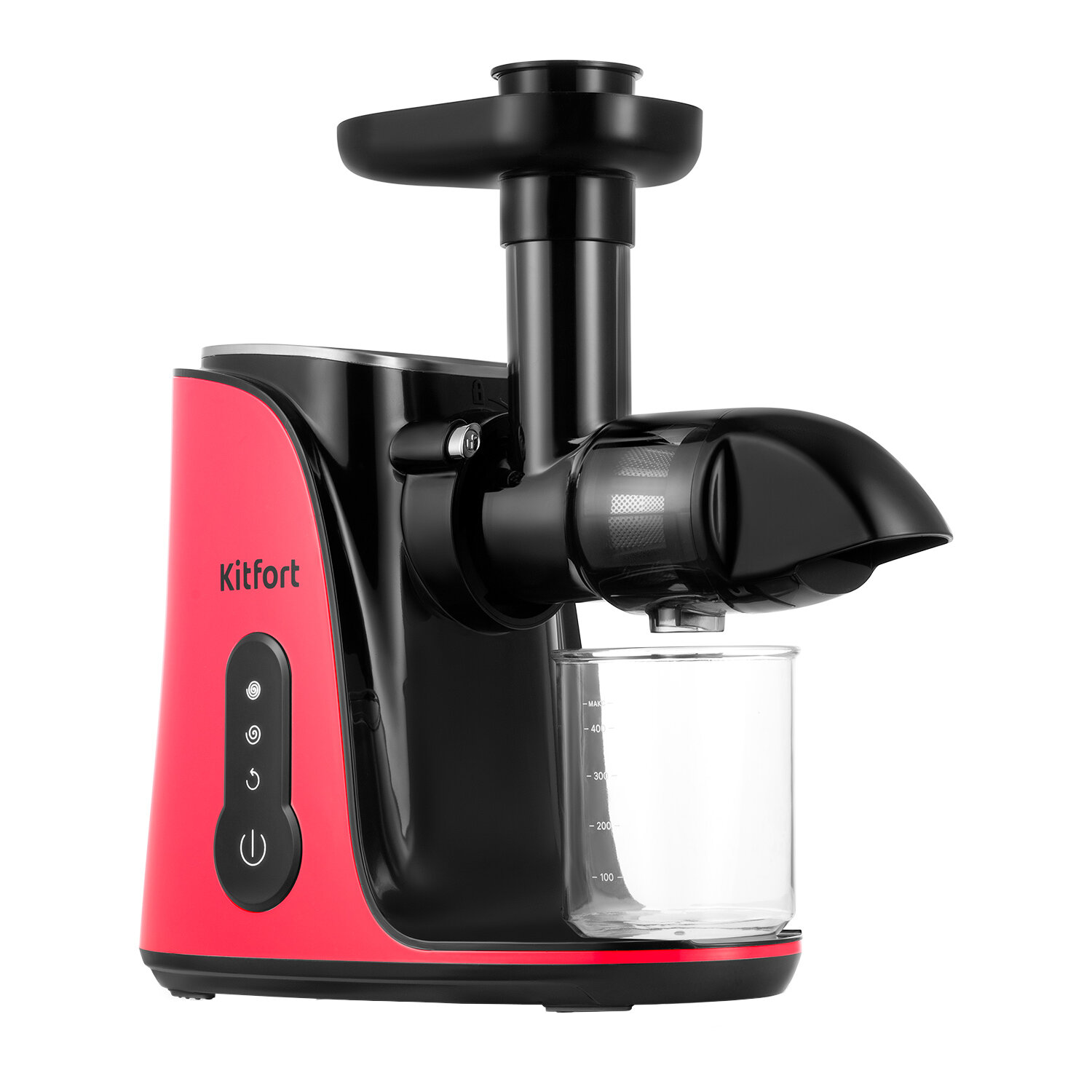 На боковой панели соковыжималки размещена сенсорная панель для включения/выключения, регулировки скорости, а также для включения реверса. Последняя функция упрощает процесс очистки шнека после отжима и облегчает извлечение остатков.