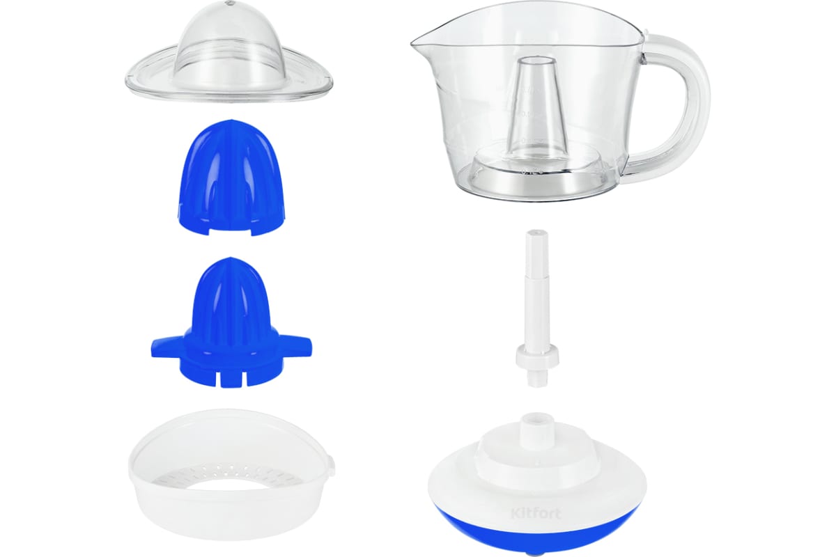 В комплекте к соковыжималке идет конус для маленьких плодов и конус для более крупных плодов, который надевается на маленький конус. Конусы и фильтр устройства выполнены из качественного пищевого пластика.