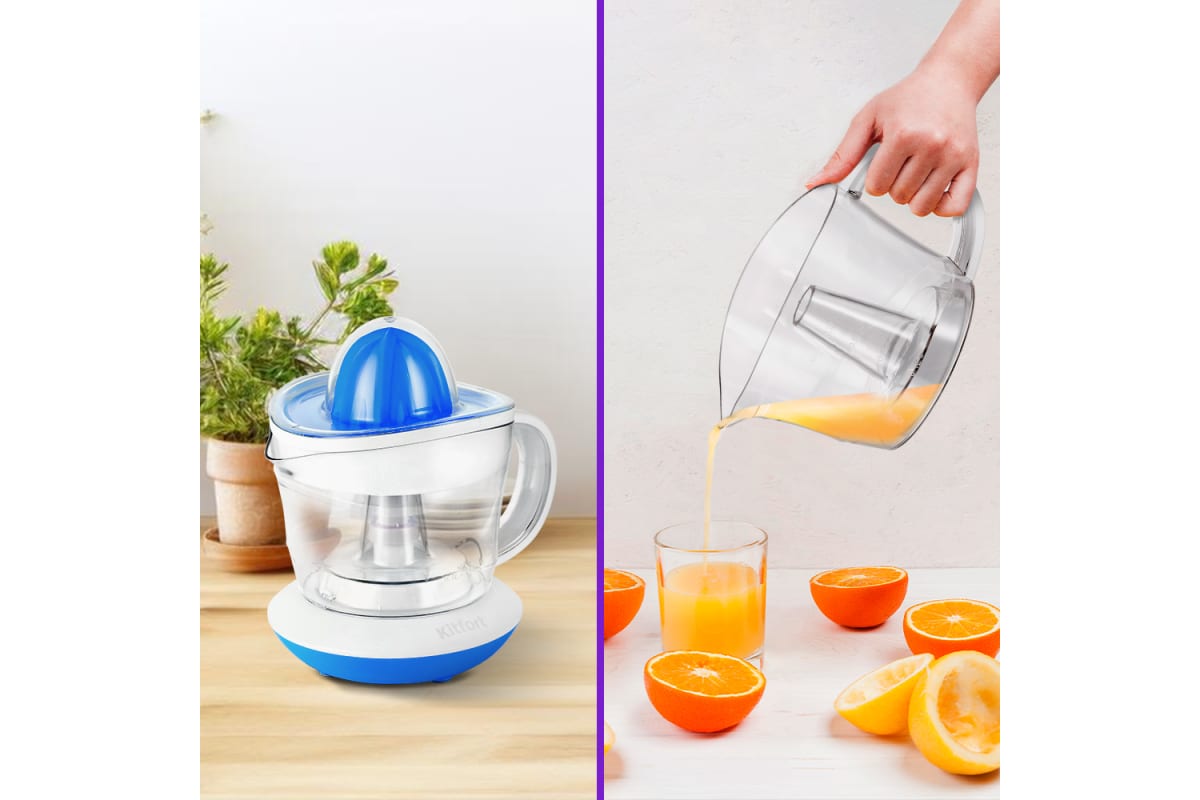 Соковыжималка КТ-1147 предназначена для отжима сока из плодов цитрусовых: лимонов, грейпфрутов, апельсинов и др. Главное преимущество соковыжималки для цитрусовых — для нее не требуется очищать цитрусы от корки, их лишь необходимо предварительно разрезать пополам поперек долек.