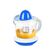 Чтобы привести соковыжималку в действие, нужно надавить плодом на конус для отжима сока, и конус начнет вращаться. Конус может вращаться в двух направлениях, что позволяет отжать из цитрусовых максимальное количество сока. Подача сока осуществляется контейнер для сока. На контейнер для сока нанесена мерная шкала. Благодаря наличию фильтра крупные куски и косточки не попадут в сок. Удобный носик и ручка лотка позволят аккуратно перелить сок в другую емкость.