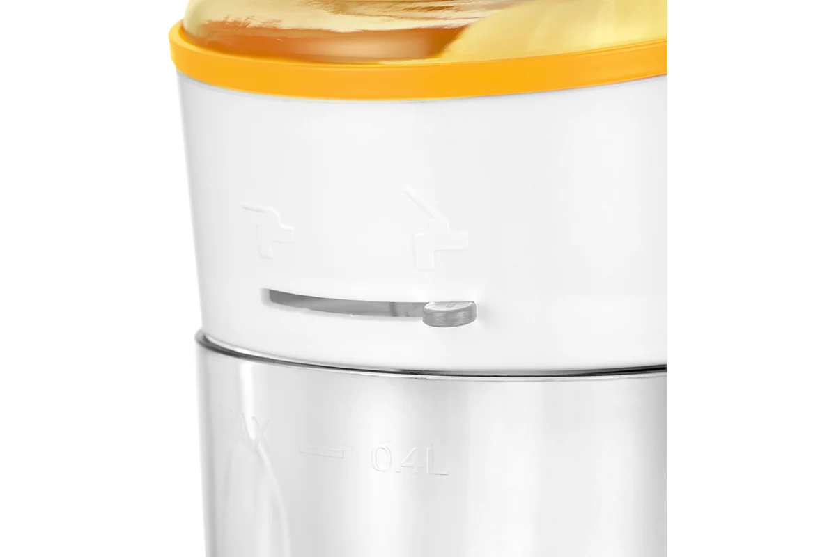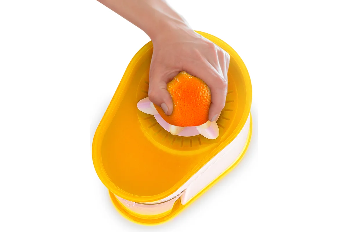 Чтобы привести соковыжималку в действие, нужно надавить плодом на конус для отжима сока, и конус начнет вращаться. Конус может вращаться в двух направлениях, что позволяет отжать из цитрусовых максимальное количество сока. Также это защищает двигатель от чрезмерной нагрузки при блокировке: когда конус начинает вращаться с трудом, меняется направление вращения. Благодаря наличию фильтра крупные куски и косточки не попадают в сок.