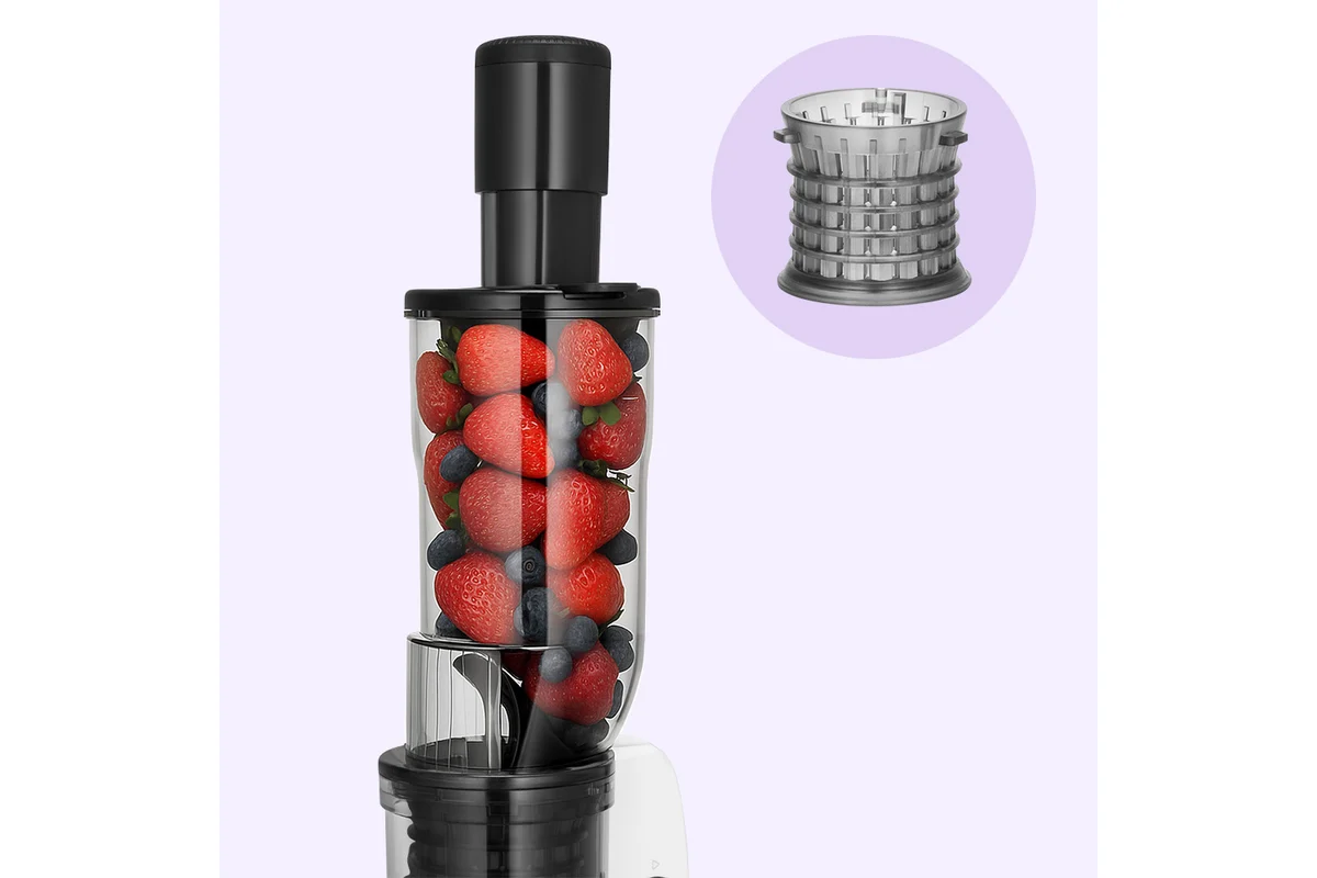 Низкая скорость вращения обеспечивает более низкую температуру в процессе отжима в отличие от центробежной соковыжималки, что способствует сохранению питательной ценности продуктов. В шнековой соковыжималке сок почти не вспенивается, а время его контакта с воздухом минимально, поэтому сок не окисляется кислородом.