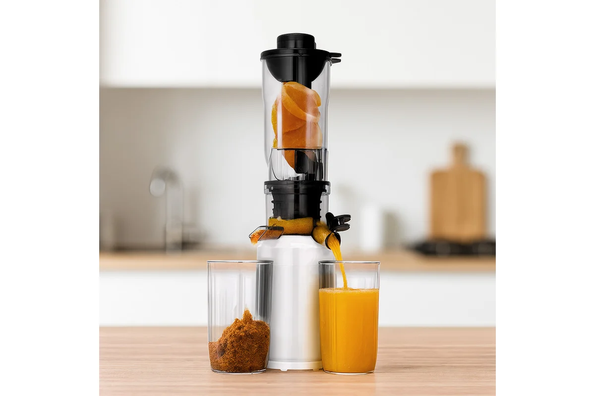 Шнековая соковыжималка работает на низких скоростях вращения. Однако несмотря на малую скорость вращения, шнековая соковыжималка отжимает сок так же быстро, как и традиционная центробежная. Спиралевидный шнек-пресс из ультрапрочного материала дробит и прессует продукт, а затем продавливает мякоть через фильтр, отделяя жмых от сока. Эта технология низкоскоростного отжима (Low Speed Technology System, LSTS) позволяет извлечь максимальное количество питательных веществ, витаминов и ферментов из минимального количества исходного продукта, например, из фруктов, овощей или зелени.