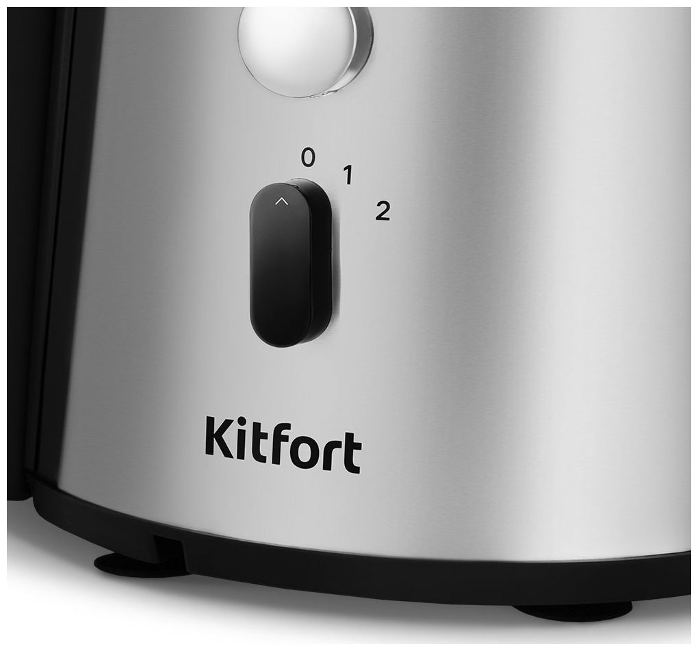На корпусе соковыжималки находится переключатель скоростей. Переключатель скорости имеет три положения: «0» – соковыжималка выключена, «1» – медленный отжим, для мягких продуктов и «2» – быстрый отжим для более твёрдых.