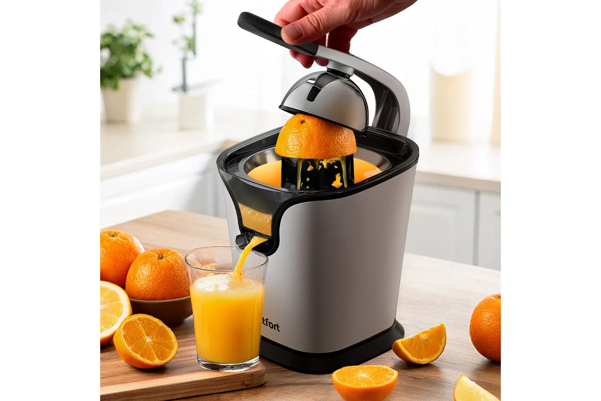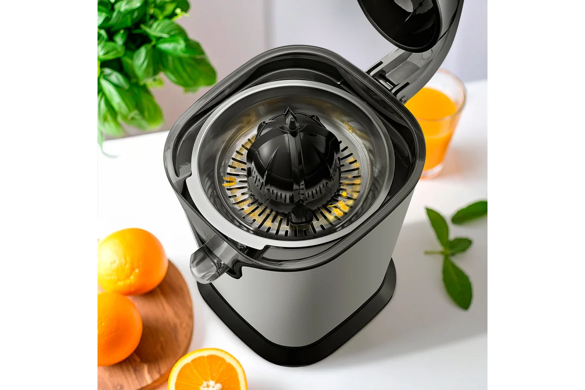 Соковыжималка КТ-1169 предназначена для отжима сока из плодов цитрусовых: лимонов, грейпфрутов, апельсинов и др. Главное преимущество соковыжималки для цитрусовых — для нее не требуется очищать цитрусы от корки, их лишь необходимо предварительно разрезать пополам поперек долек.