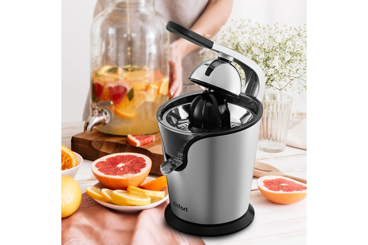 Соковыжималка для цитрусовых КТ-1170 предназначена для отжима сока из плодов цитрусовых: лимонов, грейпфрутов, апельсинов и др. Главное преимущество соковыжималки для цитрусовых — для нее не требуется очищать цитрусы от корки, их лишь необходимо предварительно разрезать пополам поперек долек.