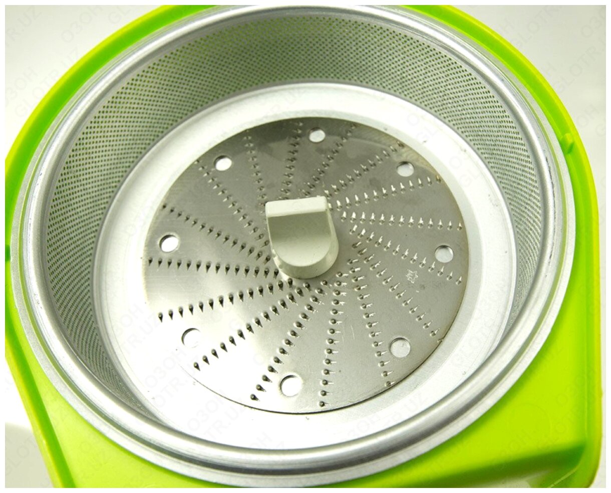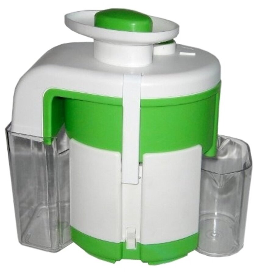 номинальная потребляемая мощность: 160 Вт; производительность - не менее 700 г/мин, предназначена для получения в домашних условиях сока из твердых овощей и фруктов; резервуар для сока: стакан; загрузочный лоток