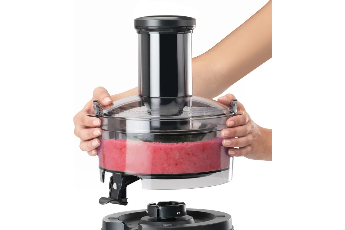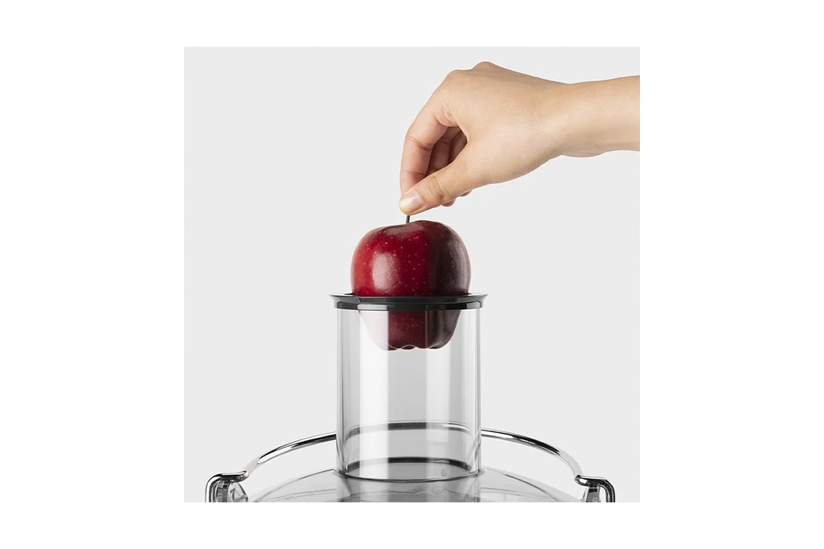 Две скорости позволяют готовить как самые мягкие, так и самые твердые фрукты и овощи, что позволяет получить максимальную отдачу от продукта. Носик без капель гарантирует, что вы не пропустите ни капли. Нет необходимости в приготовлении - нет проблем. В 3–дюймовый загрузочный лоток помещаются целые фрукты и овощи, благодаря чему вы можете быстро выжимать сок, не нарезая его кубиками.