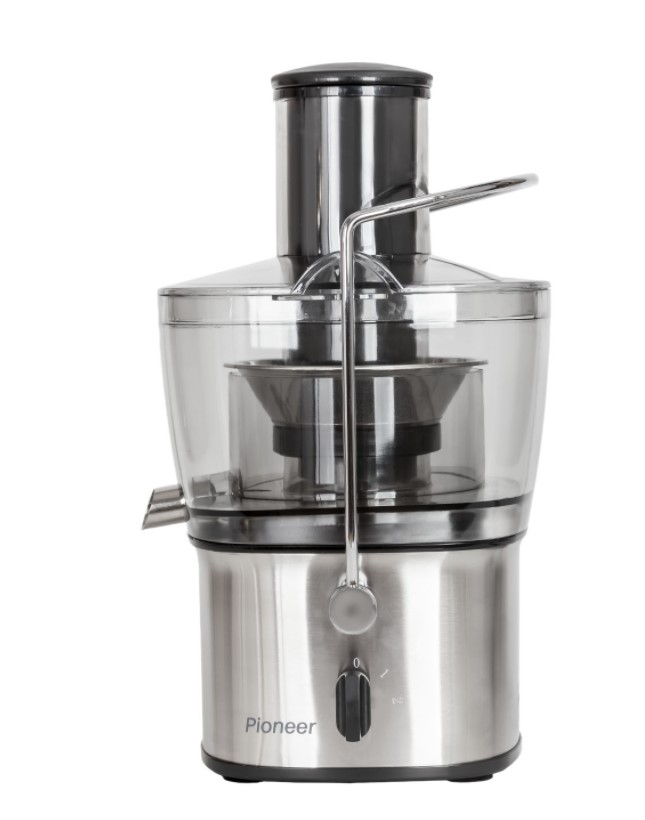 Центробежная высокопроизводительная соковыжималка JC2050 Pioneer мощностью 1100 Вт с 2 режимами скорости, увеличенным желобом (7,5 см) для подачи целых овощей и фруктов, 2 контейнерами и фильтром из нержавеющей стали позволит получить большой объем чистого сока всего за несколько минут. Высокая скорость вращения - 18 000 об/мин способствует быстрому и безопасному получению свежего сока из различных фруктов и овощей. Контейнер для сока объемом 1 л с пеносепаратором позволяет избавляться от неизбежной пены. Это особенно полезно при получении сока из яблок или же если вы закрываете сок на зиму. Помимо пеносепаратора в соковыжималке предусмотрен автовыброс мякоти. Контейнер для мякоти имеет объем 1,7 л. Автоблокировка при неправильно установленной крышке убережет от неприятных ситуаций с разбрызгиванием и продлит срок службы соковожималки. Приготовление соков с помощью соковыжималки Pioneer - это простой, полезный и вкусный способ включения фруктов и овощей в ваш постоянный рацион.