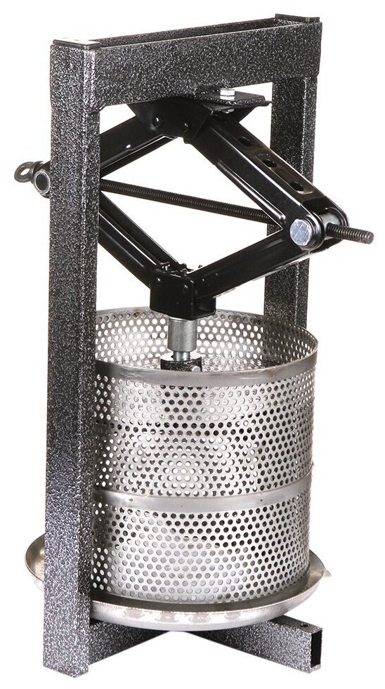 Соковыжималка механическая Фрегат ПДВ-12. Конструкция соковыжималки довольно проста, она включает в себя тарелку, корпус и винтовой пресс. На верхнем конце винта пресса закреплена рукоять для вращения, на нижнем конце – поршень, для защиты от разбрызгивания продукта, устройство комплектуется специальным кожухом. Для сбора и отвода сока тарелка имеет специальное углубление и желоб. Поскольку работа пресса не зависит от источников питания, его можно использовать при любых условиях на даче или в сельской местности, где отсутствует электроэнергия.