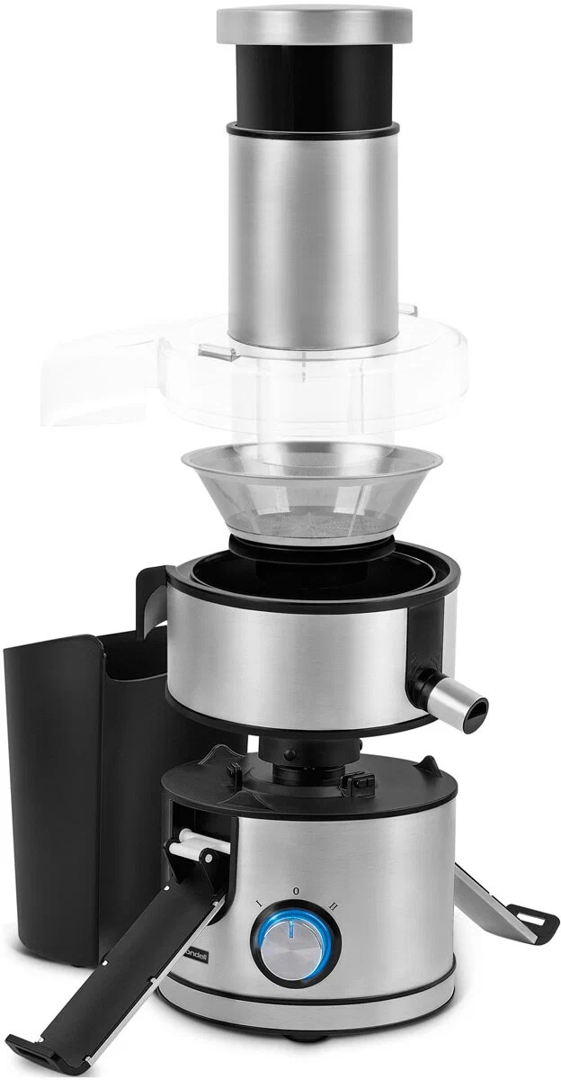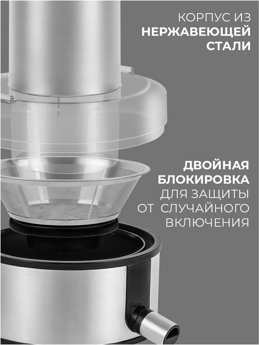 электропитание 220-240В; резервуар для сока: стакан; материал сетки: нерж. сталь