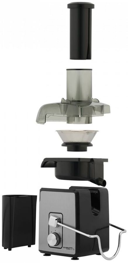 резервуар для сока: стакан; материал сетки: нерж. сталь; максимальная скорость вращения: 15000 об/мин; щеточка для чистки