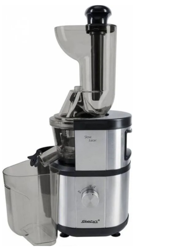 Шнековая соковыжималка Steba потребляет около 400 Вт, очень тихая и эффективная, а для удобства предусмотрен большой диаметр горловины.Полностью разборная конструкция позволяет легко очистить прибор после его использования.