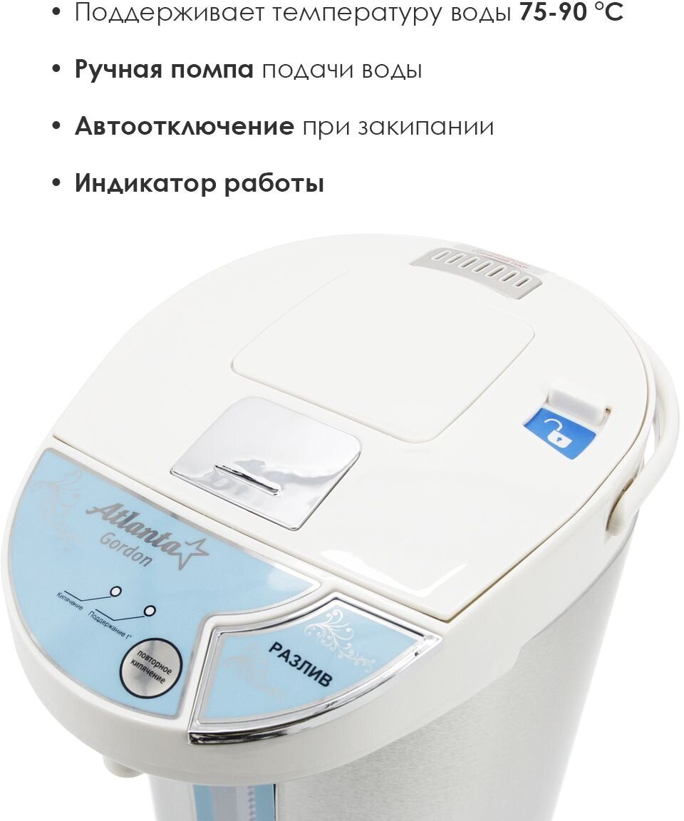 Термопот Atlanta ATH-2651 предназначен для бытового применения.