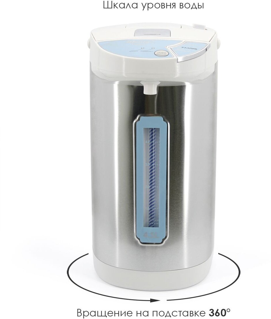 Служит для нагрева воды и удержания ее температуры в течение длительного времени, что экономит время и силы на многоразовый разогрев чайника.