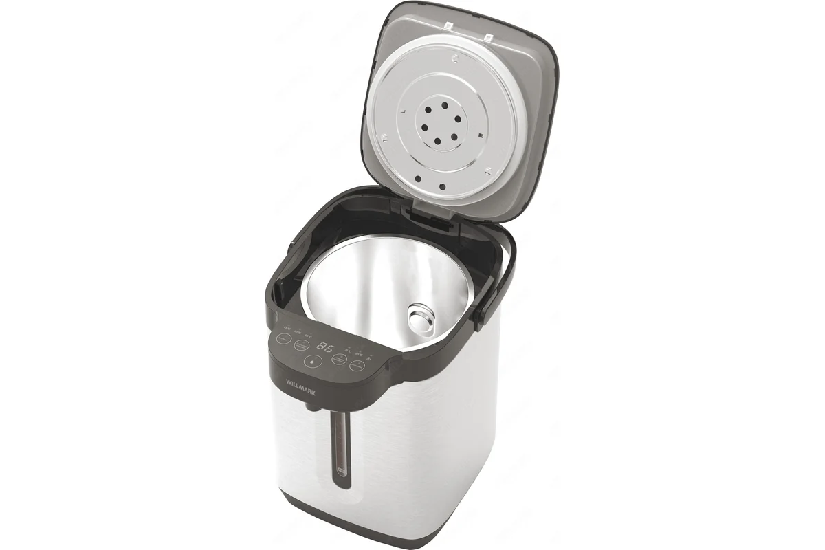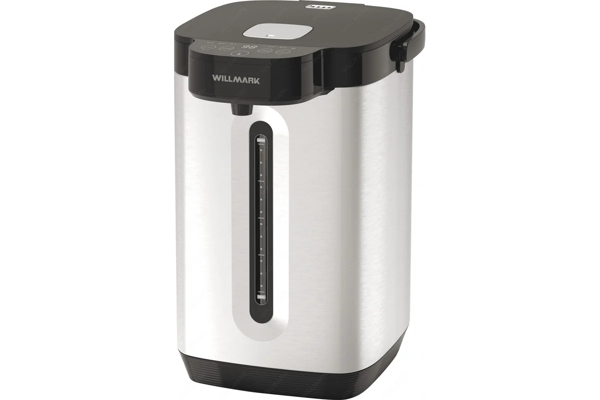 Поттер WILLMARK WAP-609G — отличный помощник на кухне, сочетает в себе функции электрочайника и термоса. Имеет стильный внешний вид и минималистичный дизайн. Термопот служит для подачи воды заданной температуры и поддержания температуры воды с помощью периодического включения и отключения нагрева. Дисплей проинформирует о заданных параметрах. Термопот оснащен функцией выбора температуры и может не только вскипятить, но и нагреть воду до температуры 45, 55, 65, 75, 85 и 95 °С, что очень удобно при заваривании различных сортов чая. Поттер WILLMARK -стильное и надежное приобретение для Вашего дома!