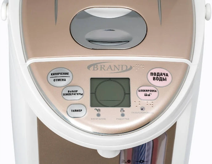 Термопот Brand 4404S имеет оригинальный дизайн. Кроме того, термопот, благодаря значительной (750 ватт) мощности имеет возможность быстро кипятить и нагревать все 4 литра своего объёма.